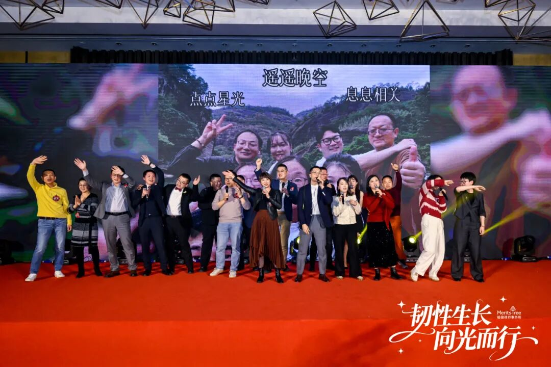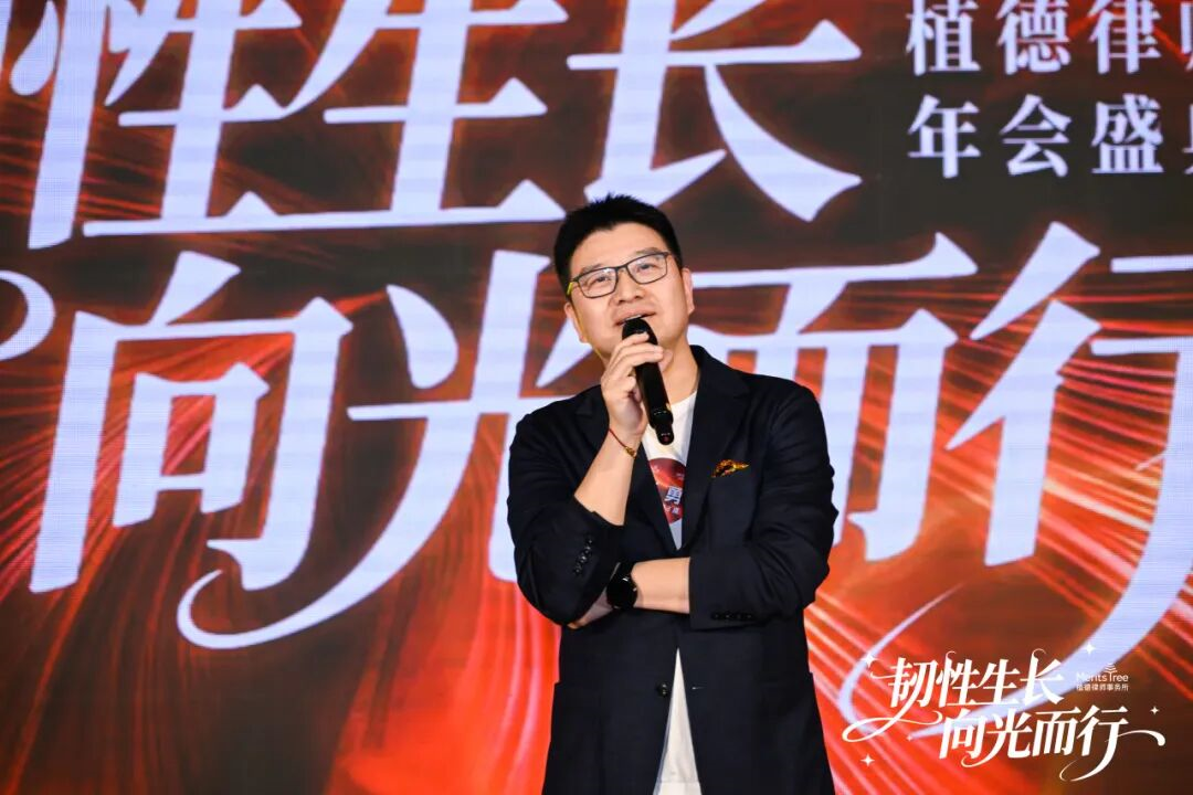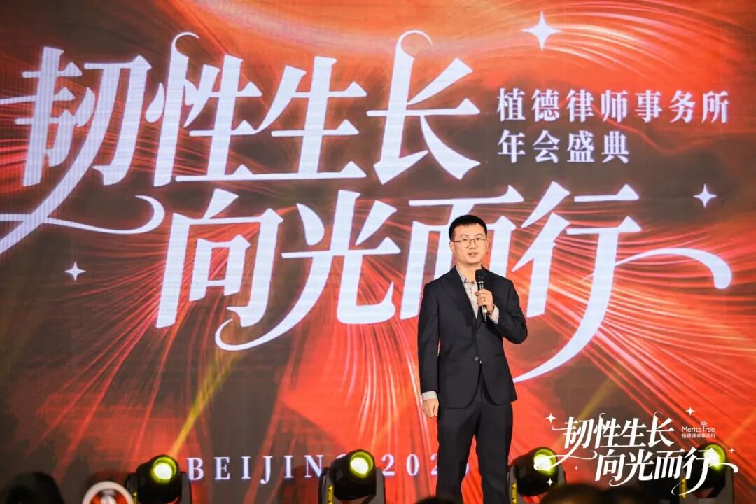 随着年会序曲悠扬奏响,植德创始合伙人代表金有元律师与龙海涛律师分别发表了激情澎湃的祝酒词。他们深情回顾过往创业历程,对植德首次500余人的团聚表达感动与感谢。在即将步入九周年的重要时刻,植德始终坚守初心,以党建为引领,深度融合党建与业务,有效增强了团队的凝聚力与向心力。面对复杂多变的市场环境和诸多挑战,植德人以“无畏山高路远,只问初心何在”的坚定信念破局前行,在律所发展的道路上稳步迈进,朝着“成为客户首选律师事务所”的愿景又迈出了坚实的一步。