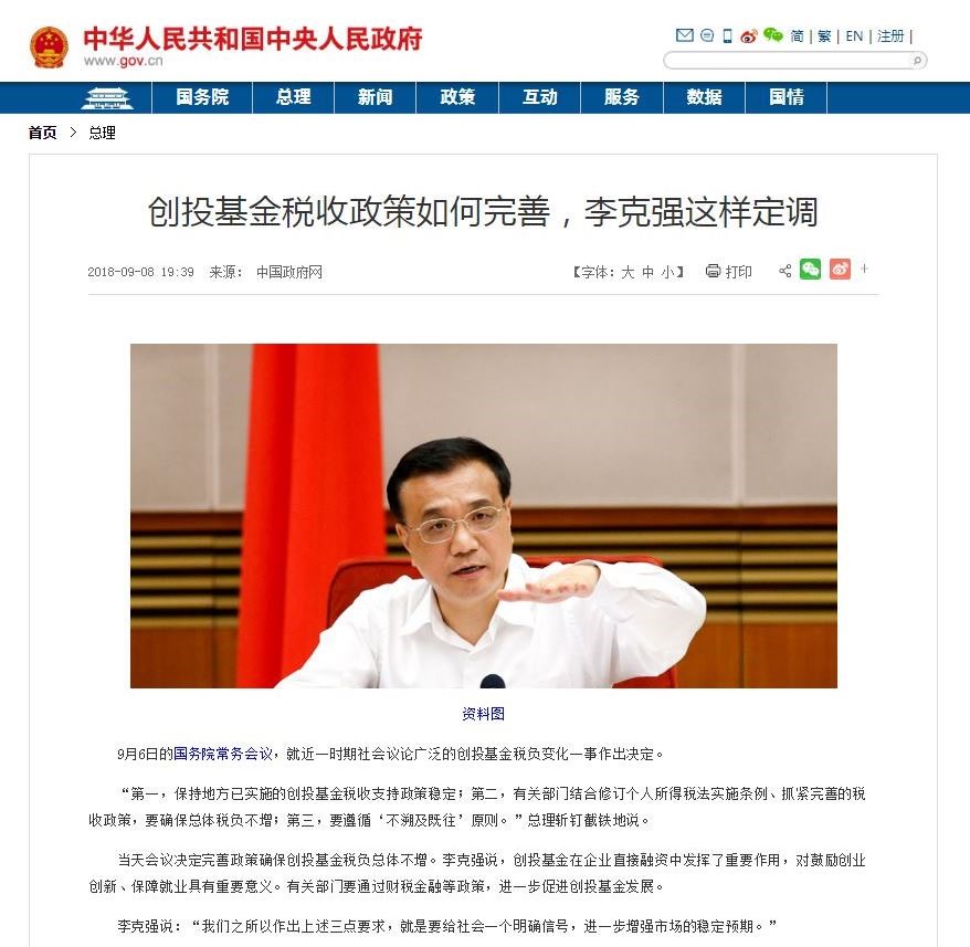 事实上,昨天国务院常务会议落实的是9月6日的会议内容。针对社会关注的创投基金税负变化问题,今年9月6日召开的国务院常务会议明确,将保持地方已实施的创投基金税收支持政策稳定,由有关部门结合修订个人所得税法实施条例,按照不溯及既往、确保总体税负不增的原则,抓紧完善进一步支持创投基金发展的税收政策。这一规定传递出以税收优惠促进创业创新的积极动向。