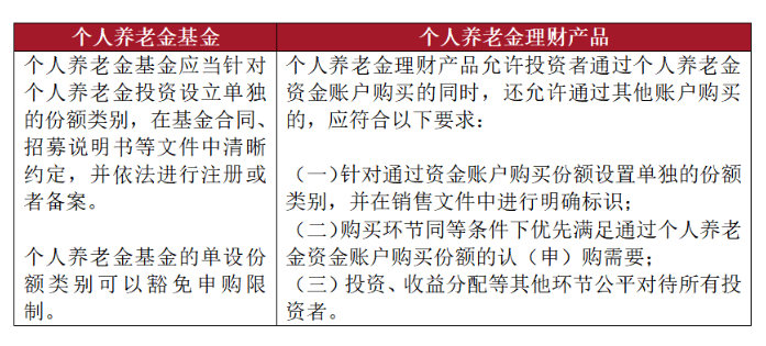 两类产品都需要清晰披露专为个人养老金投资者特设的份额类别,都可以对个人养老金投资者豁免申购限制或优先满足申购需求。