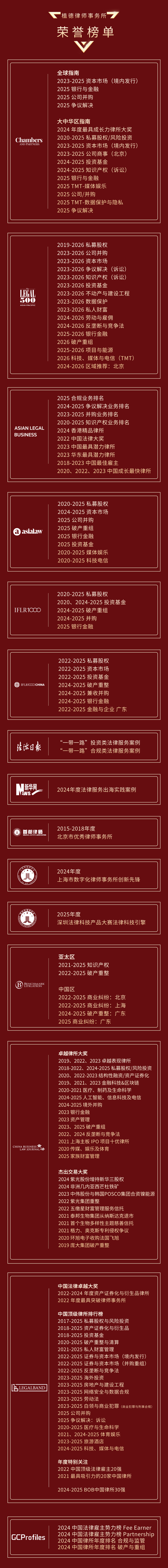 基于对中国法律服务市场的跟踪与调研,并经Asia Pacific Media Foundation核准,GRCD正式公布“2025年GRCD中国客户首选科技、媒体与通信律师15强”的最终获奖名单。