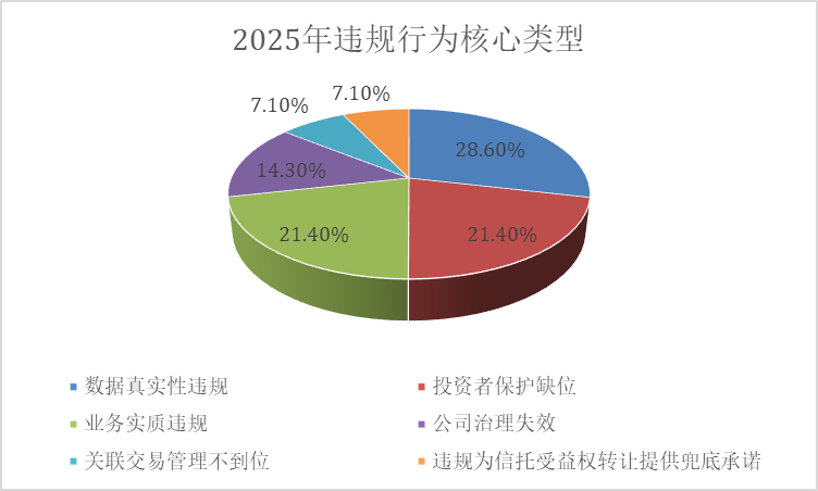 第三阶段(2023年-2025年):违规更加系统化,且常出现多项违规合并处罚。例如依托系统进行数据造假,以隐性兜底承诺替代显性刚兑,模糊关联方认定隐瞒交易风险等。