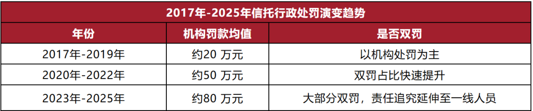 2017年-2025年间,信托行业行政处罚总体上呈现两个明显趋势:
