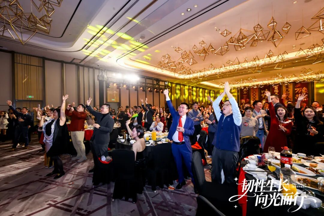 随着年会序曲悠扬奏响,植德创始合伙人代表金有元律师与龙海涛律师分别发表了激情澎湃的祝酒词。他们深情回顾过往创业历程,对植德首次500余人的团聚表达感动与感谢。在即将步入九周年的重要时刻,植德始终坚守初心,以党建为引领,深度融合党建与业务,有效增强了团队的凝聚力与向心力。面对复杂多变的市场环境和诸多挑战,植德人以“无畏山高路远,只问初心何在”的坚定信念破局前行,在律所发展的道路上稳步迈进,朝着“成为客户首选律师事务所”的愿景又迈出了坚实的一步。