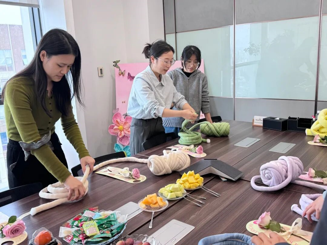 “此心安处是吾乡。” 成都办公室以一场靠枕 DIY,打造一方温柔的归心之所。午后的会议室里,棉麻布料、缤纷绒线铺陈开来,大家围坐一起,穿针引线,指尖流转间是创意与专注的碰撞。有人认真研究编织教程,有人互相帮忙配色,欢声笑语中,一个个独一无二的靠枕逐渐成形 —— 有的简约素雅,有的俏皮灵动,每一只都藏着制作者的温度与巧思。这不仅是手作,更是忙碌中的片刻疗愈。当她们将靠枕抱在怀中,也仿佛把一份柔软与归属感拥入心间。归心之美,正在于此:在创造中安放自我,在温柔中汲取力量。