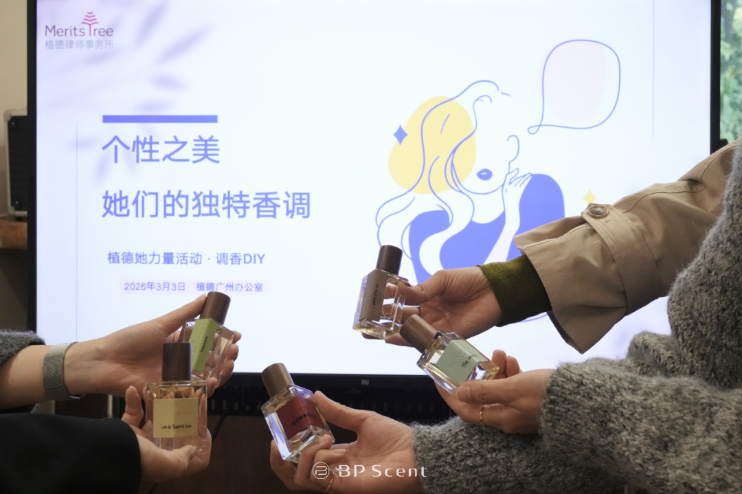 细雨迷蒙的老城区里,独栋别墅掩映其间,一树树木棉花正迎着细雨嫣然绽放。广州办公室的女神们暂别 CBD 的忙碌,走进这处闹市静隅,赴一场调香之约。专业调香师引导大家识香、闻香 —— 前调的清冽、中调的馥郁、后调的悠远,每一层香气都在唤醒感官。她们认真滴入每一滴精油,低头记录配方,时而闭目轻嗅,时而相视交流。当最后一滴精油落下,一瓶瓶专属香水诞生:有人偏爱冷冽木质调,有人钟情温柔花果香,每一种香气都是内心的外化,每一瓶都是个性的宣言。正如香气无形却缭绕不绝,植德女性的力量,亦在无声处沁人心脾。